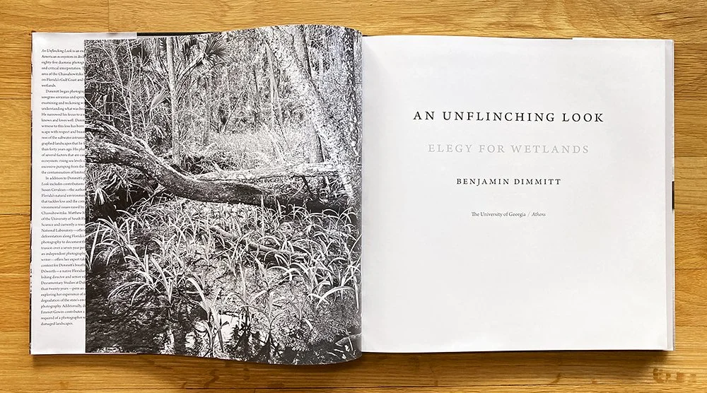The University of Georgia Press published a book of Benjamin’s climate change project titled An Unflinching Look: Elegy For Wetlands in the fall of 2023. In addition to his photography and writing, the publication includes contributions from distinguished photographer, Emmet Gowin; naturalist and activist, Susan Cerulean; research scientist and native Floridian, Dr. Matthew McCarthy; photography scholar and curator, Dr. Alison Nordström; and Alexa Dilworth, a native Floridian and former publishing director at Duke University's Center for Documentary Studies.